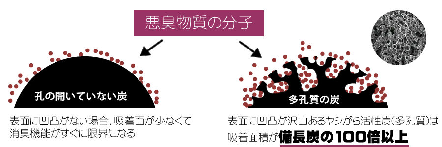 ニオイの吸着面積は備長炭の約100倍の表面積
