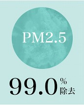 健康への影響が心配されているPM2.5は、2.5μm(マイクロメートル)の微粒子です。肺に吸い込んでしまって、様々な病気の原因になるとも言われます。フルポイントは0.1~2.5μmの微粒子を99%除去することが実験で証明されている空気清浄機です。